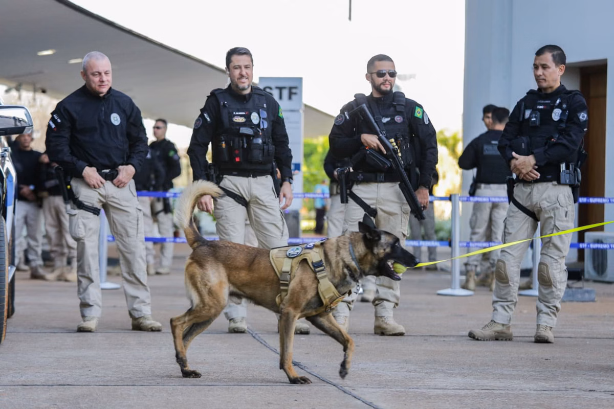A presença dos cães farejadores evidencia o rigor da segurança no STF, garantindo a integridade da sessão que julgará acusações de tentativa de impedir a posse de Luiz Inácio Lula da Silva (PT).