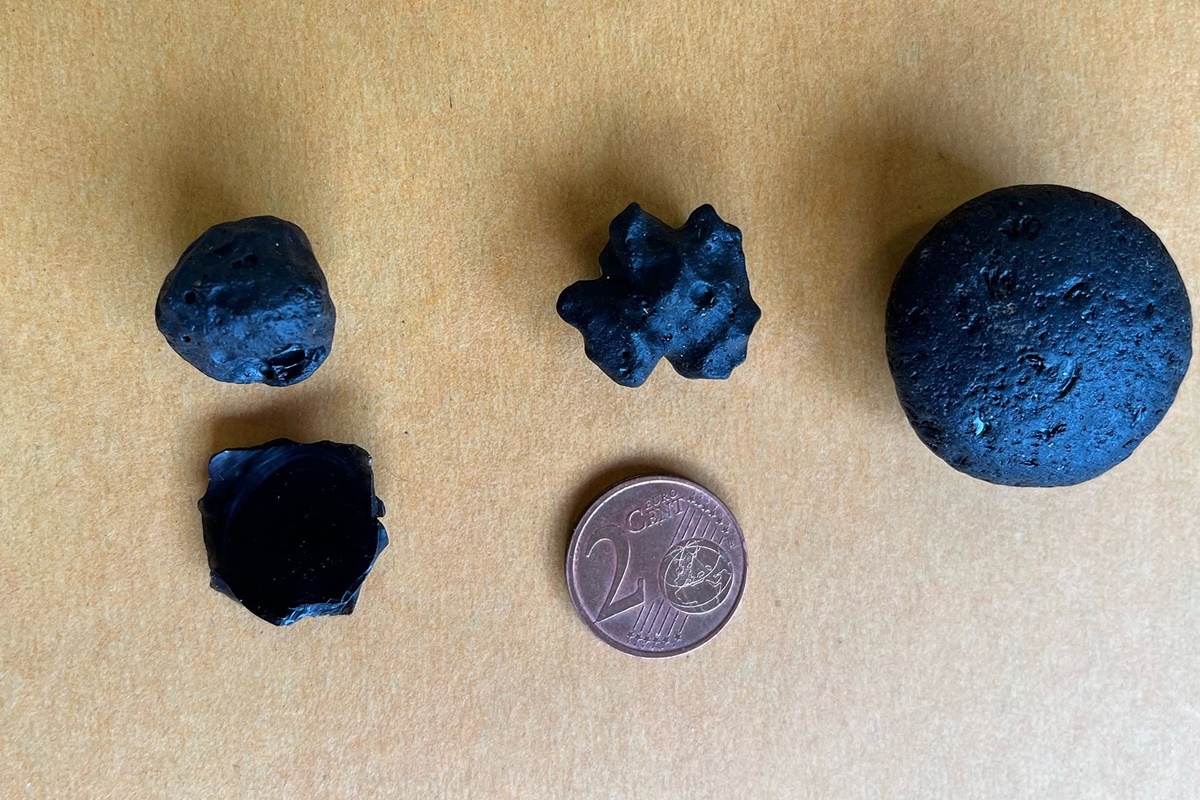 As cinco mil peças encontradas foram mergulhadas em líquidos para estimar sua densidade. Os 417 tectitos mais densos e com mais níveis de ferro foram selecionados pela equipe. Pequenos, eles tinham tamanho parecido com o de uma moeda.