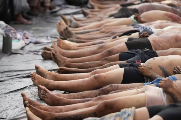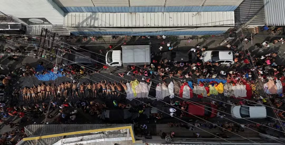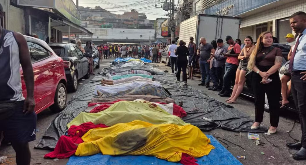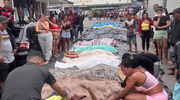 Imagens registradas por moradores e agências internacionais mostram o impacto e a dimensão da tragédia. A cena de dezenas de corpos espalhados na praça evidencia o nível de violência da operação, que paralisou a cidade e deixou marcas profundas na comunidade.