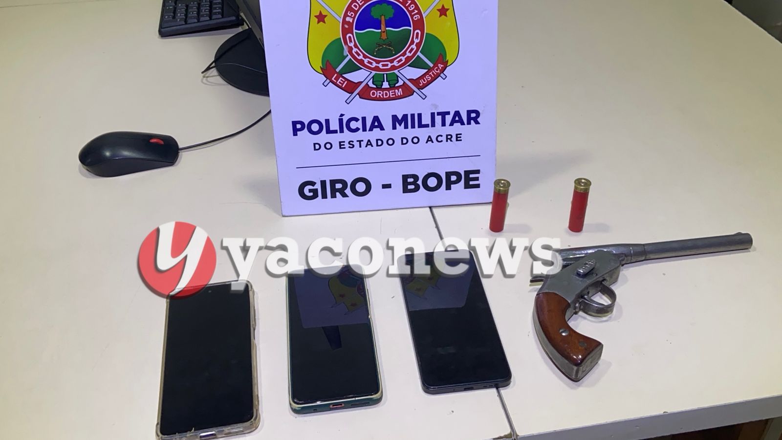 Com o adolescente, os militares encontraram a escopeta municiada com dois cartuchos intactos e diversos celulares. No momento da abordagem, um dos aparelhos tocou, e ao atender, o policial ouviu a vítima relatando que havia acabado de ser assaltada. A PM orientou o morador a registrar a ocorrência na Delegacia de Flagrantes (Defla), onde o jovem foi levado junto com a arma e a motocicleta — que também constava como roubada.