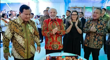 O presidente Luiz Inácio Lula da Silva compartilhou em suas redes sociais, nesta quinta-feira (23), uma publicação em tom de gratidão ao povo indonésio e ao presidente Prabowo Subianto. Lula destacou a emoção em participar de um jantar realizado em Jacarta, onde foi homenageado por seus 80 anos a serem completados no próximo dia 27 de outubro e também pelos 74 anos de Prabowo, celebrados no último dia 17.