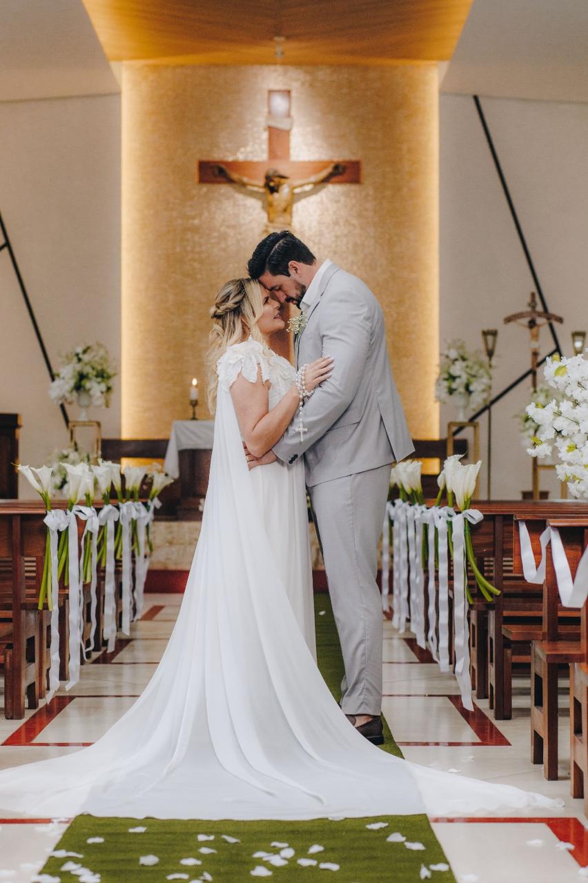 A publicitária Charlene Lima e o gestor público Robson Vidal oficializaram a união no último sábado (6), durante uma cerimônia reservada realizada na Paróquia São Peregrino, em Rio Branco.