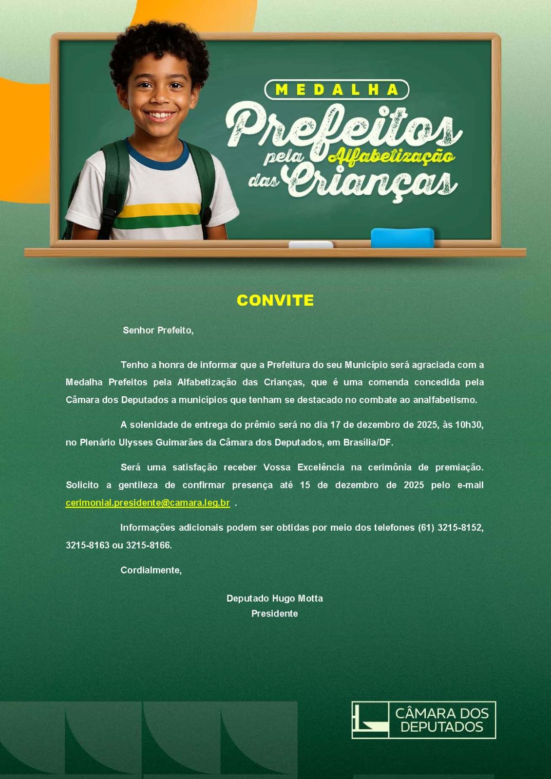 A medalha reconhece prefeitos e prefeitas de todo o país que se destacaram por ações e políticas públicas voltadas ao fortalecimento da alfabetização na idade certa, valorizando investimentos na educação básica e no desenvolvimento das crianças nos primeiros anos escolares.