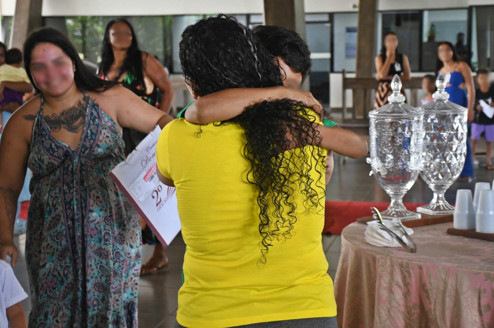 Lágrimas de saudade se misturavam com o sorriso genuíno proveniente da alegria pelo fim da espera. O abraço forte, muitas vezes entre soluços, era seguido pela sutileza de segurar o rosto, passar a mão pelo cabelo e apertar as pequenas mãos. Em minutos, parecia recuperado o tempo suspenso. O mosaico de emoções descreve o encontro das reeducandas com os filhos durante o projeto Abraçando Filhos, realizado pela Coordenadoria da Infância e Juventude (Coinj) do Tribunal de Justiça do Acre (TJAC) nesta sexta-feira, 19.
