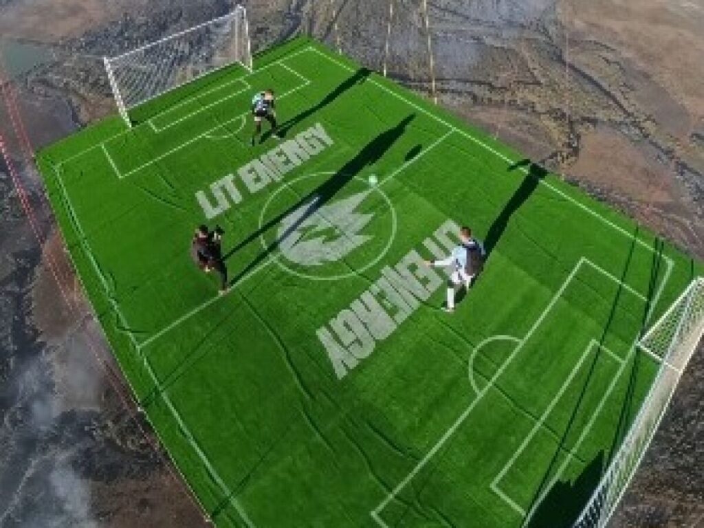 O atleta russo Sergey Boytsov realizou uma façanha inusitada e garantiu um novo recorde ao jogar uma partida de futebol em uma plataforma de grama sintética suspensa por um balão de ar quente, a cerca de 1.800 metros de altitude.