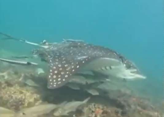 Vídeo: Raia-chita gigante encanta mergulhador em registro raro no mar do Arpoador
