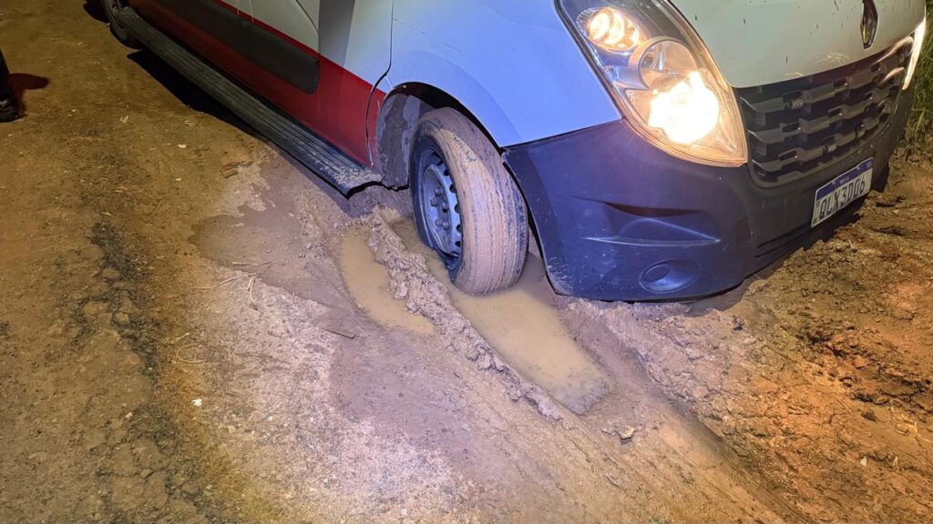 Na noite deste sábado (03), uma ambulância de suporte básico do Samu, ficou atolada após cair em um buraco da travessa JK, no bairro Vitória, em Rio Branco.