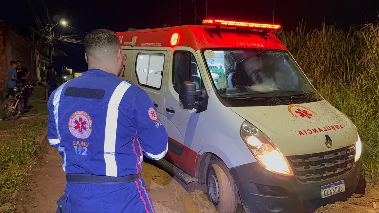 Os socorristas foram acionados para atender a uma ocorrência de agressão física, mas, foram surpreendidos pelo enorme buraco na travessa que mais parece um varadouro.