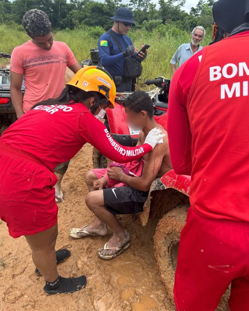 A guarnição de salvamento se deslocou até o local com apoio da Polícia Militar. Em razão das dificuldades de acesso ao ramal, os agentes utilizaram quadriciclos para conseguir chegar até a vítima.
