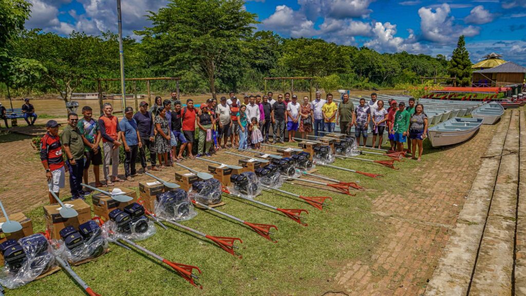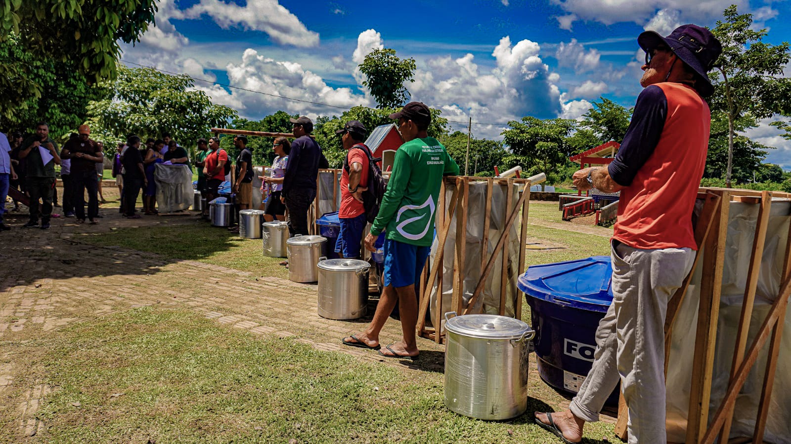 Aliado a isso, foram entregues, ainda, 12 kits de beneficiamento de açaí. Os kits contêm uma despolpadora, duas caixas d’água e um caldeirão em alumínio.