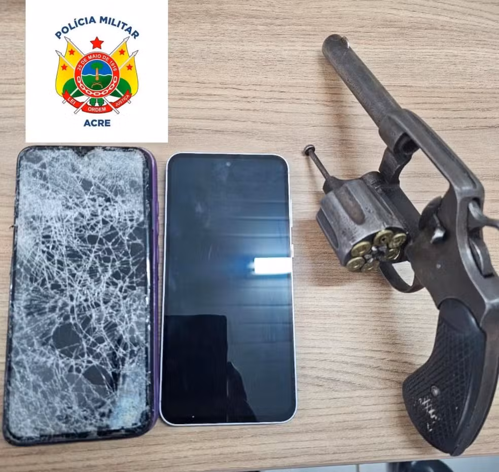 Durante a abordagem, os militares constataram que o suspeito portava um revólver calibre .38 e fazia ameaças à companheira. A arma estava carregada com seis munições, sendo cinco intactas e uma deflagrada.