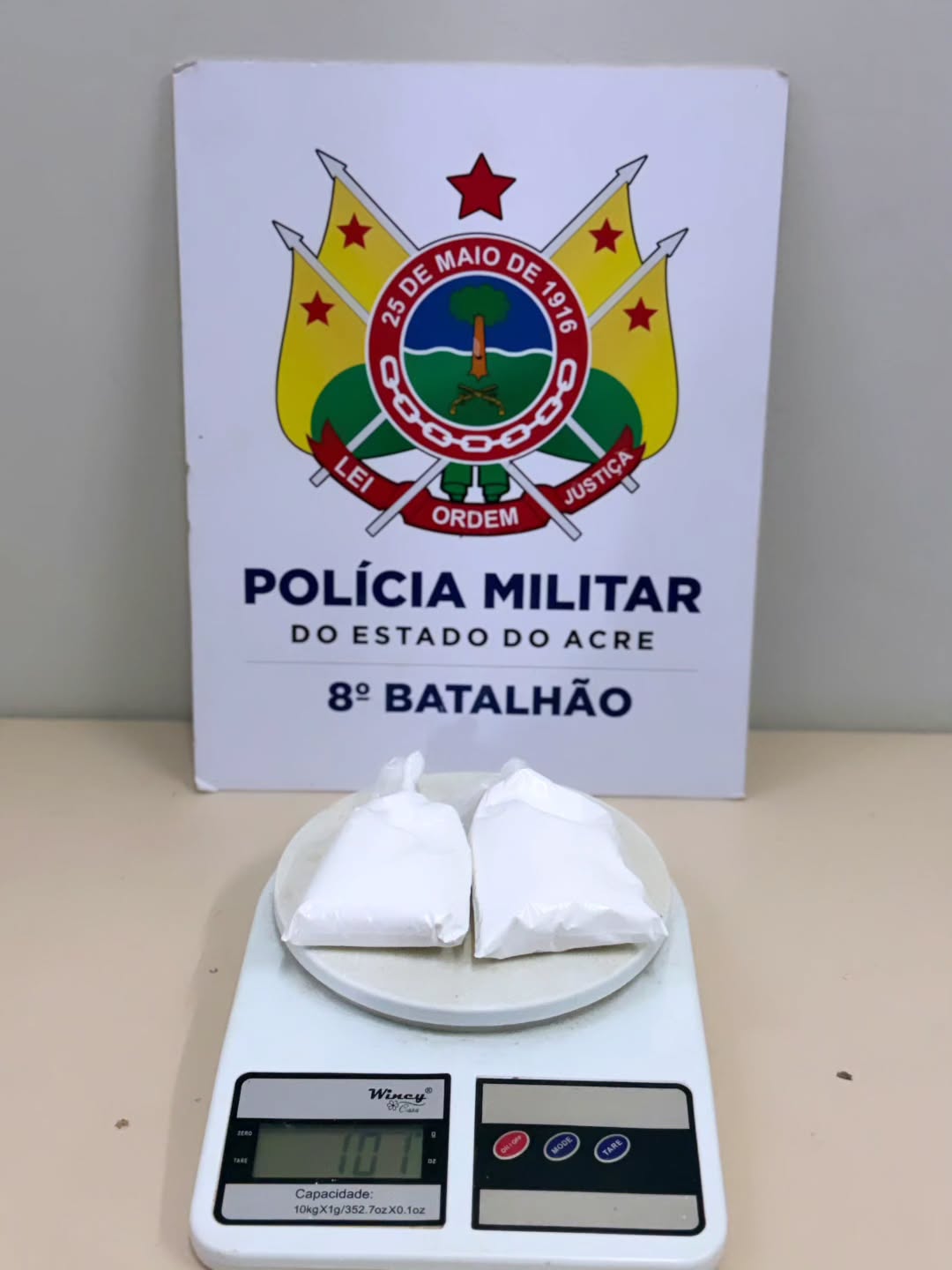 Policiais do 8º Batalhão da Polícia Militar do Acre prenderam um homem por suspeita de tráfico de drogas durante uma ação de policiamento ostensivo no bairro Eugênio Augusto Areal, em Sena Madureira.