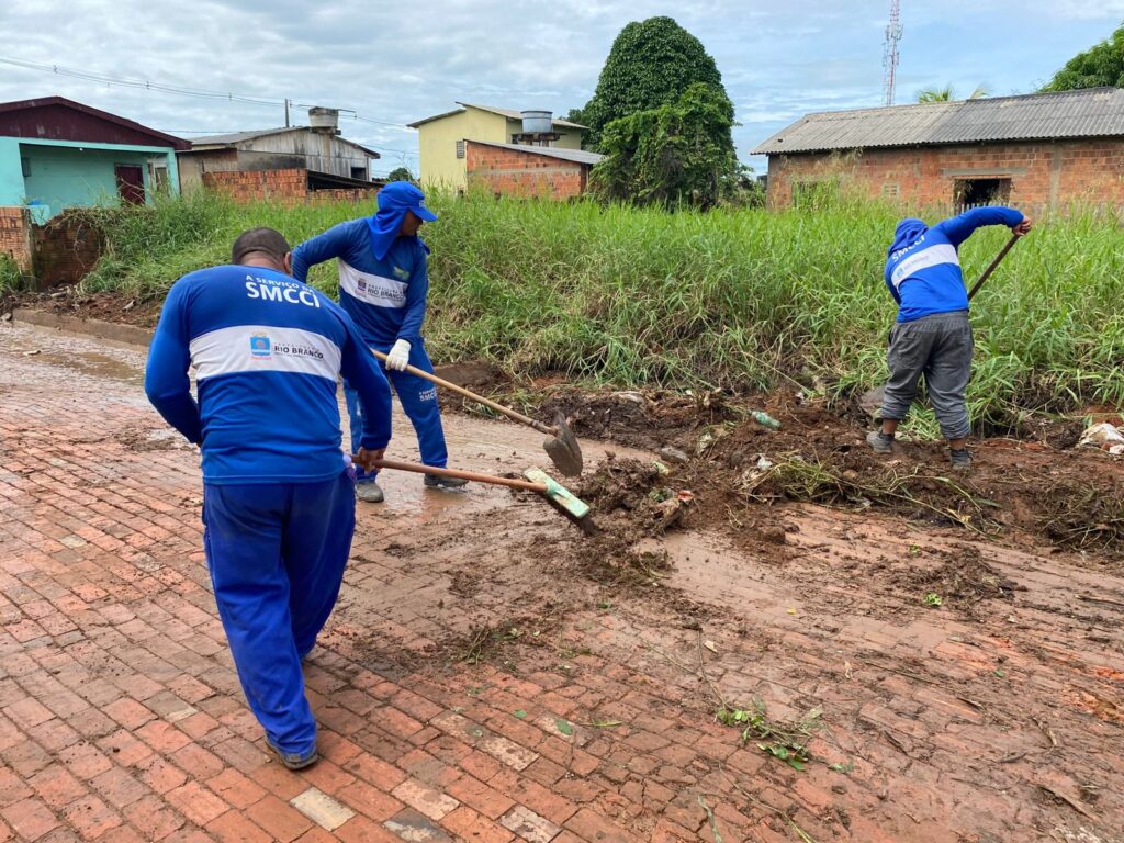 Com a diminuição do nível do Rio Acre, equipes iniciaram nesta sexta-feira (2) os serviços de limpeza em áreas atingidas pelas recentes inundações em Rio Branco. Os trabalhos ocorrem principalmente em bairros que sofreram com o acúmulo de lama e resíduos deixados pela cheia.