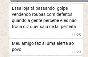“Eles dizem que a roupa saiu da loja em perfeitas condições e não fazem a troca”, relatou Elissandra. Ainda segundo ela, diversas pessoas já teriam passado pela mesma situação.