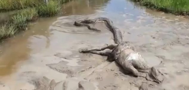 Durante uma ronda de rotina, o policial militar Marcos Paulo Monteiro registrou uma cena impressionante envolvendo uma sucuri e um bezerro em um córrego localizado na zona rural de Nova Bandeirantes, município a cerca de 1.016 quilômetros de Cuiabá. O episódio ocorreu no fim do ano passado, mas ganhou grande repercussão após o vídeo ser divulgado nas redes sociais por um amigo do policial, Eder Fisherman.