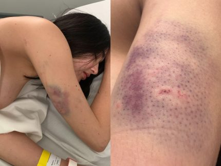As publicações também trazem marcas visíveis de agressão no corpo. Em uma imagem, ela mostra lesões e escreve: “Realmente, começa com agressão verbal. Depois um puxão de braço… Nunca na frente de outras pessoas, sempre quando estão a sós.” Em outro trecho, ela descreve a dinâmica do relacionamento abusivo e afirma que tentou ajudar o agressor: “Mas você pensa que consegue salvar a pessoa. Você tenta afastar a pessoa das drogas, você tenta levar ela pra igreja, você senta no banheiro e chora enquanto reza pra ele se acalmar.”