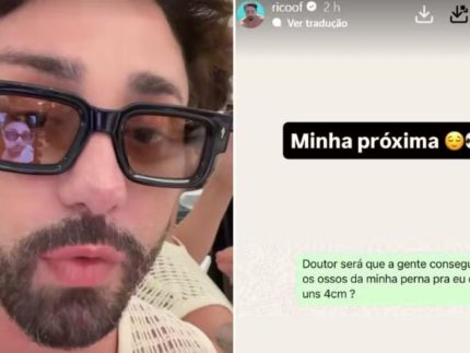 Em seguida, Rico deixou claro que a ideia não é brincadeira e faz parte de seus planos para 2026: “A minha próxima cirurgia esse ano é diminuir a minha altura. Estou procurando um profissional que faça esse tipo de procedimento, que é serrar os ossos das pernas e reduzir 4 cm. Eu me acho muito alto, então tenho essa vontade”, afirmou.