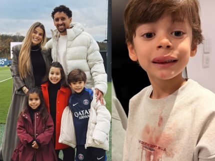 Nos stories do Instagram, Carol compartilhou um registro de Enrico com a boca inchada, além da blusa suja de sangue. Na legenda, a esposa do jogador do Paris Saint-Germain e da Seleção Brasileira relatou o acidente: “Ontem, um susto… Enrico caiu em casa à noite e foi tanto sangue, bateu a boca, que a mãe aqui ficou desesperada”, desabafou.