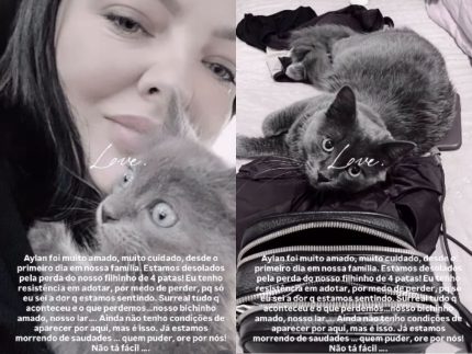 No desabafo, a artista contou que ainda não se sente preparada para retornar à rotina ou aparecer publicamente, destacando a dor pela perda do animal e do lar. Ela também pediu orações aos seguidores: “Aylan foi muito amado, muito cuidado desde o primeiro dia em nossa família. Estamos desolados pela perda do nosso filhinho de quatro patas! Tenho resistência em adotar, por medo de perder, porque só eu sei a dor que estamos sentindo”, escreveu Adriana.