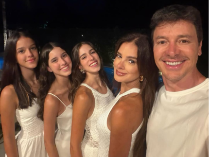 Vera Viel, esposa de Rodrigo Faro, compartilhou fotos do Ano Novo em família e um detalhe chamou atenção: a semelhança com as filhas. Nos registros, o casal aparece ao lado de Clara, Maria e Helena curtindo o réveillon em uma casa de praia luxuosa. Nos comentários das publicações, internautas disseram que as adolescentes parecem irmãs da apresentadora e influenciadora.