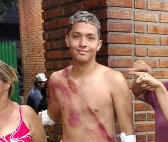 Uma imagem que circula em grupos de mensagens mostra as marcas deixadas pelo cinto de segurança no corpo de Marcos, indício de que o equipamento pode ter sido fundamental para preservar sua vida diante da violência do impacto.