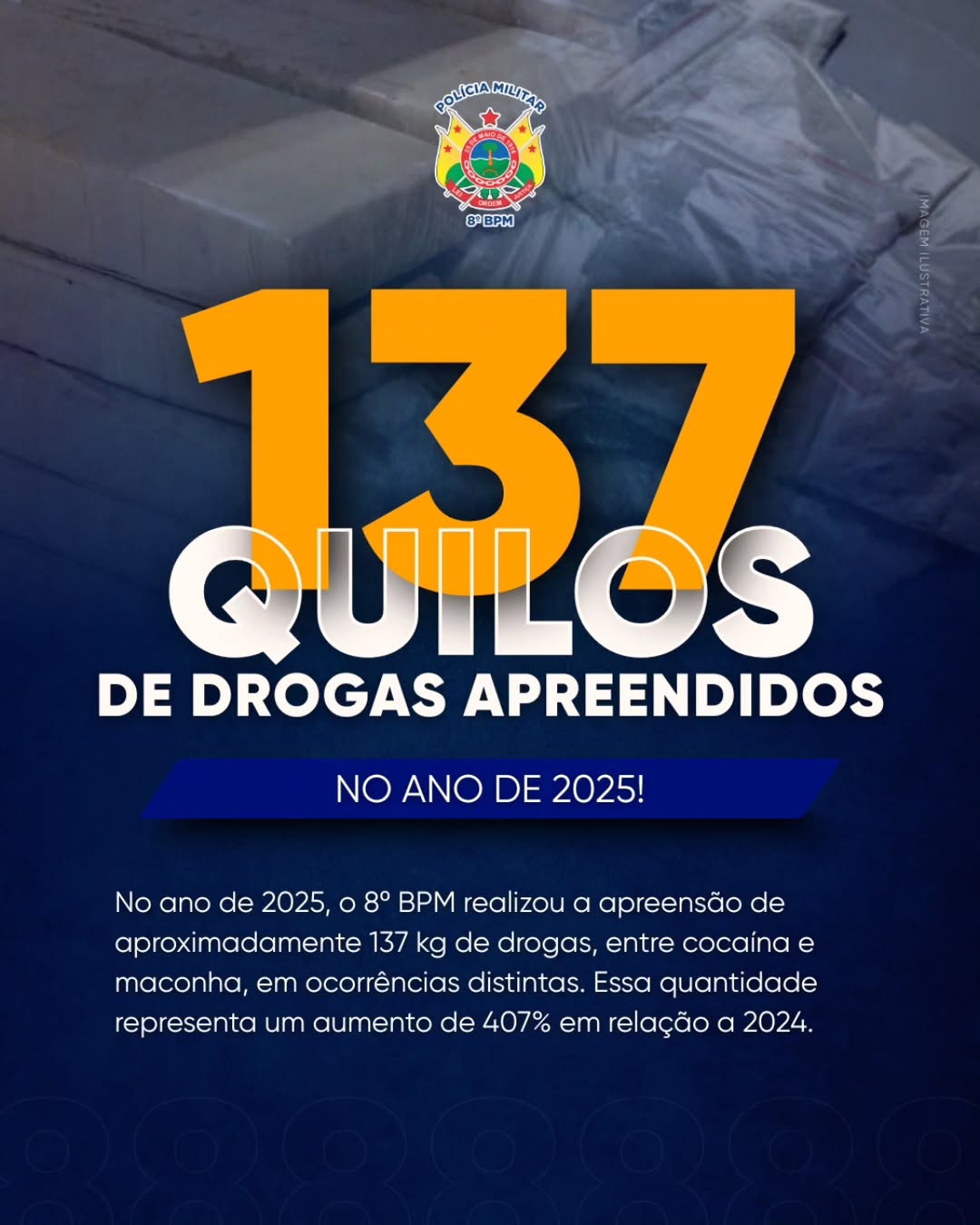 O volume de drogas retirado de circulação representa um aumento de 407% em relação ao ano de 2024, evidenciando a intensificação das ações policiais e o fortalecimento das estratégias de enfrentamento ao crime organizado na região.
