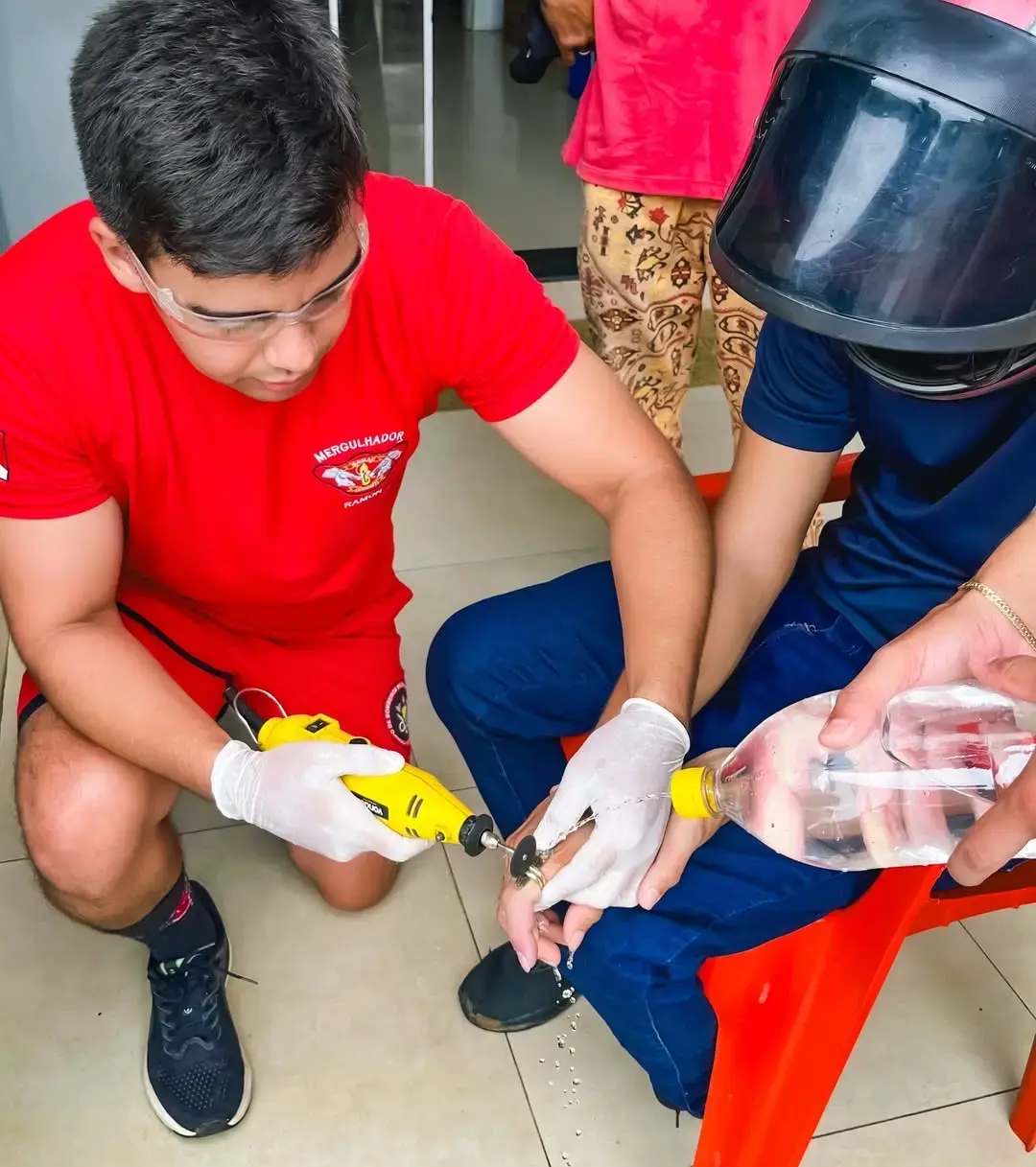 Um homem precisou acionar o Corpo de Bombeiros Militar do Acre após ficar com um anel preso no dedo, em Cruzeiro do Sul. A ocorrência foi registrada na quinta-feira, 12, e demandou o uso de equipamento específico para remover o acessório com segurança.