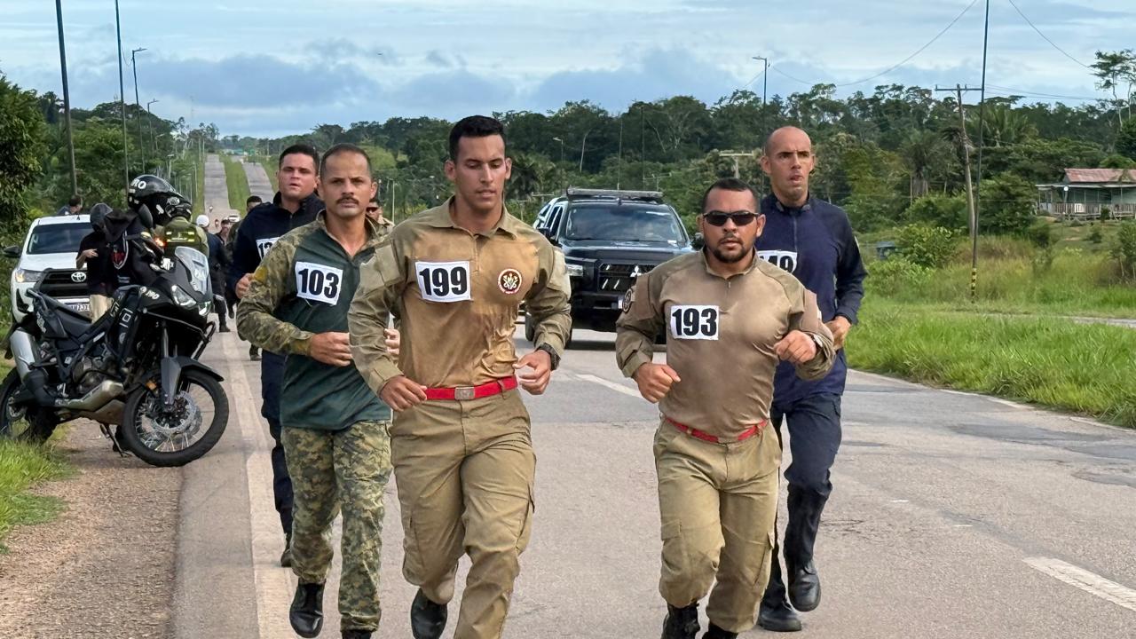 A primeira fase consistiu em uma corrida de 8 quilômetros, com largada na BR-364, na rotatória de acesso ao Aeroporto Internacional de Rio Branco. O percurso já impõe forte desgaste físico aos competidores.