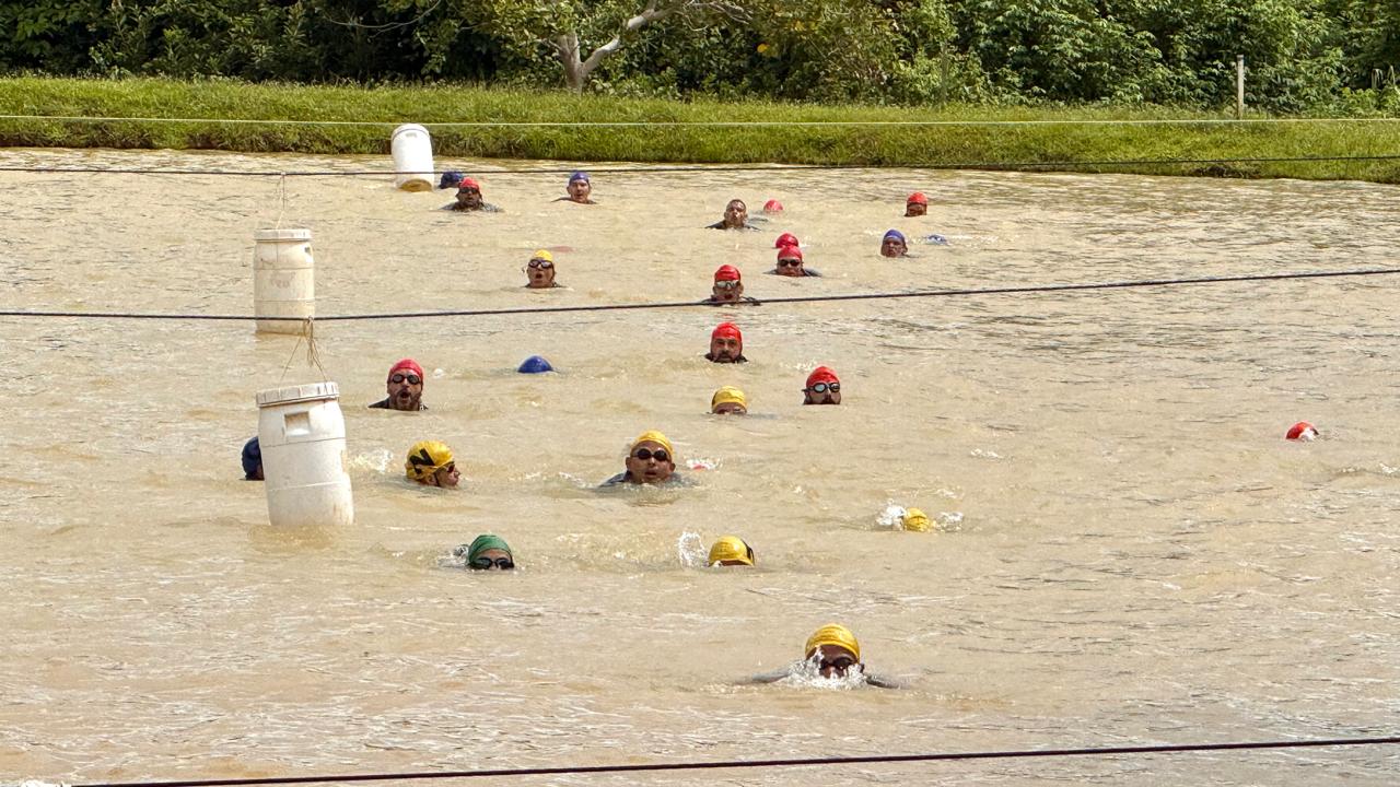 Para concluir o desafio e conquistar o título de “Bopeano Blindado”, os competidores precisaram nadar seis voltas em um açude.