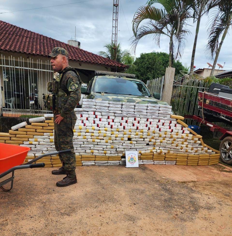 Ao todo, foram apreendidos 341 quilos de maconha do tipo skunk e 5 quilos de cocaína. A droga era transportada em uma embarcação que navegava pelo Rio Acre e foi interceptada nas proximidades do município.