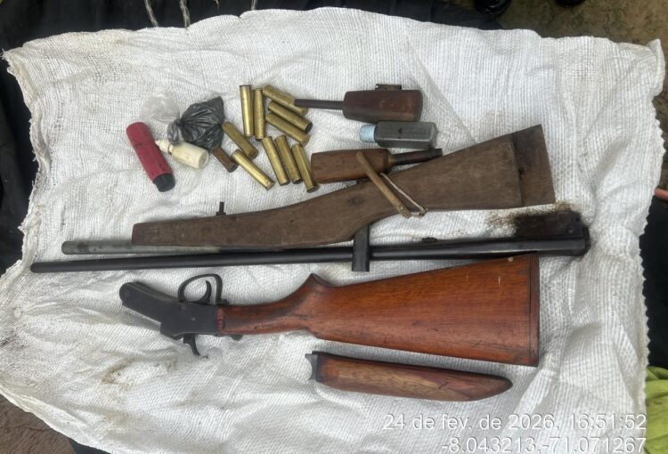 A ação foi coordenada pela Delegacia-Geral do município e ocorreu em uma residência localizada no Ramal Lomada. No local, os policiais encontraram uma espingarda e munições de fabricação caseira.