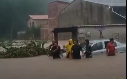 Um vídeo que circula nas redes sociais mostra o momento em que o homem é puxado pelos moradores, evitando que fosse levado pela enxurrada. As imagens foram registradas no bairro Condado e rapidamente viralizaram pela internet.