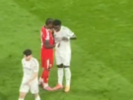 Imagens registradas das arquibancadas mostram o defensor indo em direção ao atacante do time espanhol. O camisa 7 do clube merengue indica o túnel de acesso aos vestiários, sinalizando que a troca de uniforme ocorreria fora do gramado.