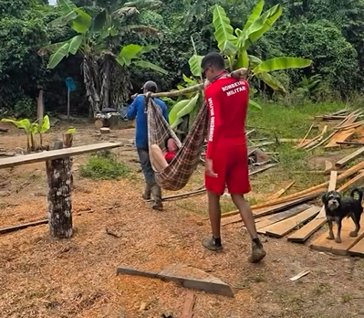 No local, a mulher recebeu os primeiros atendimentos ainda na propriedade. Para garantir a retirada com segurança, ela foi transportada em uma rede até a embarcação, em meio às dificuldades impostas pelo terreno e pelas condições climáticas.