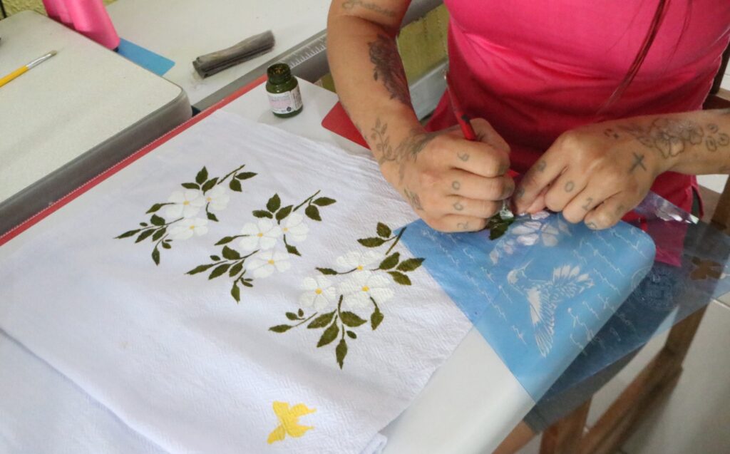 A atividade é parte do processo de ressocialização desenvolvido pelo Instituto de Administração Penitenciária (Iapen) com as mulheres privadas de liberdade. A iniciativa partiu da policial penal Dione Diniz, responsável por ensinar e acompanhar as internas em outras atividades. “Eu trabalho muito com artesanato, mas nessa área eu não trabalhava. Aí a mente criativa vai introduzindo outras coisas. Me interessei por ensinar, pesquisei e inseri para elas esse trabalho”, ressalta.