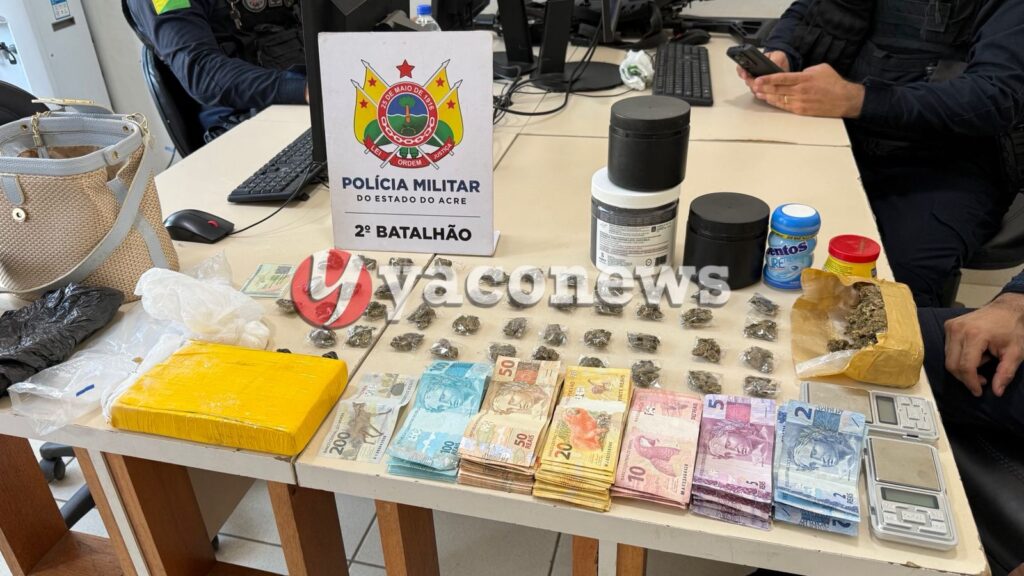 A mulher foi questionada a respeito do entorpecente, e disse que era do seu esposo, já o dinheiro ela relatou que parte era da venda de produtos lingerie.