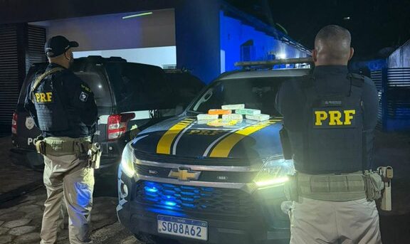 A Polícia Rodoviária Federal (PRF) apreendeu 6,15 quilos de drogas na noite do último dia 14 de fevereiro de 2026, durante fiscalização no km 683 da BR-364, em Cruzeiro do Sul. A operação contou com o apoio do Canil do CP Cães da Polícia Militar do Acre (PMAC).