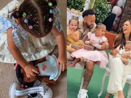 Perto de fazer dois anos, com 1 ano e sete meses, a pequena também já fala as primeiras palavras. No vídeo feito por Amanda, Helena aparece pronta para o evento assistindo um desenho em inglês, e quando o vídeo acaba, vai em direção a mãe pedindo “mais”. Neymar também já mostrou a filha do meio falando “papai”, em um vídeo nas suas redes sociais algumas semanas atrás.