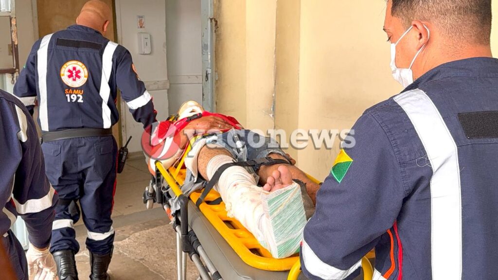 O jovem serralheiro Maykon Araújo Pessoa, de 21 anos, sofreu uma fratura na perna direita, após colidir contra uma caçamba, na estrada Jarbas Passarinho, em Rio Branco.