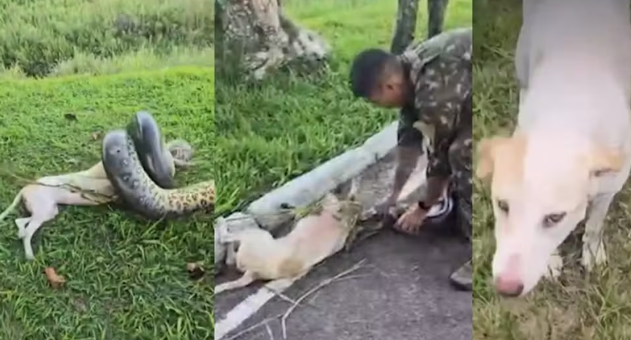 Um vídeo que circula nas redes sociais mostra o momento em que militares do Exército Brasileiro resgatam um cachorro que estava sendo atacado por uma sucuri de aproximadamente três metros, dentro da área do 53º Batalhão de Infantaria de Selva, em Itaituba, no sudoeste do Pará.