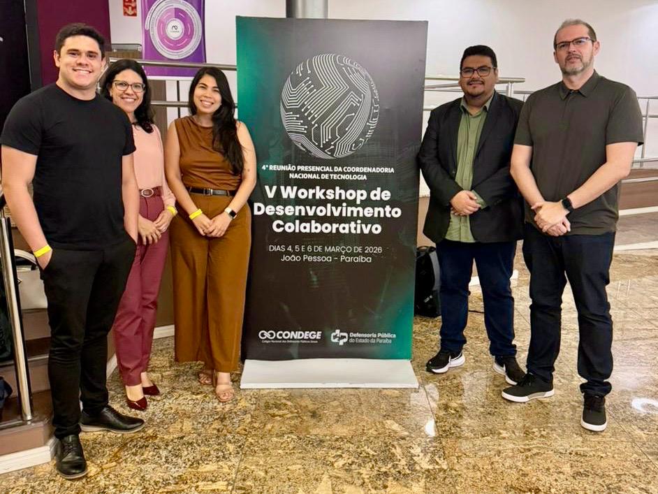 A Defensoria Pública do Estado do Acre participou do V Workshop de Desenvolvimento Colaborativo das Defensorias Públicas, realizado em João Pessoa (PB), evento que reuniu representantes de diversas defensorias do país para debater inovação tecnológica, inteligência artificial e desenvolvimento colaborativo de soluções digitais voltadas ao acesso à justiça. Representaram a instituição no encontro a subdefensora-geral Institucional, Thais Araújo, e a equipe de Tecnologia da Informação.