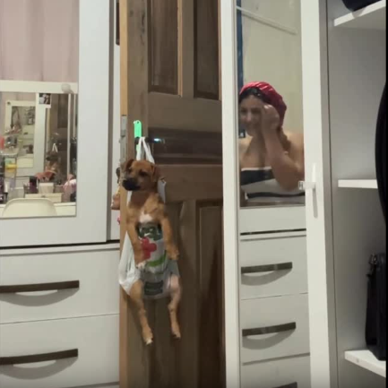 Um vídeo gravado pela jovem Stefanny Martins, de 23 anos, em Rio Branco, no Acre, viralizou nas redes sociais ao mostrar uma situação inusitada: o cachorro de estimação dela, Toddy, de apenas três meses, aparece acomodado dentro de uma sacola adaptada e pendurada na maçaneta da porta enquanto ela realiza a limpeza do quarto.