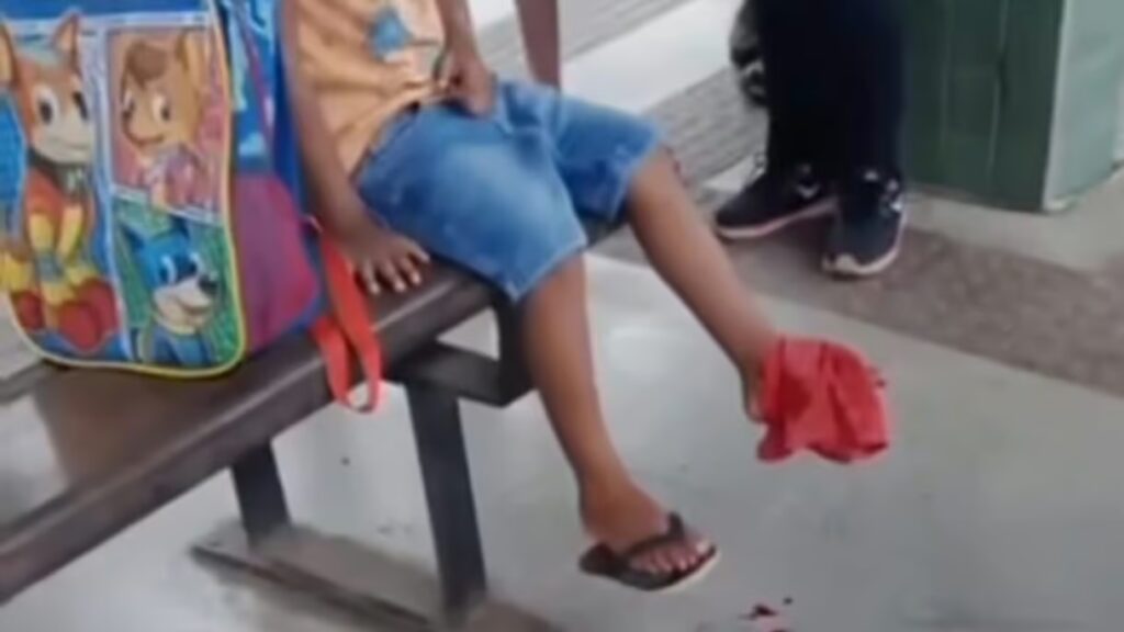 A criança, que estava acompanhada de um responsável no terminal, acabou sendo atingida pelos estilhaços. Ainda segundo relatos de pessoas que presenciaram a situação, não foi possível confirmar se o pé do menino foi atingido diretamente pela peça de vidro ou apenas pelos fragmentos, mas ele sofreu um ferimento que provocou sangramento.
