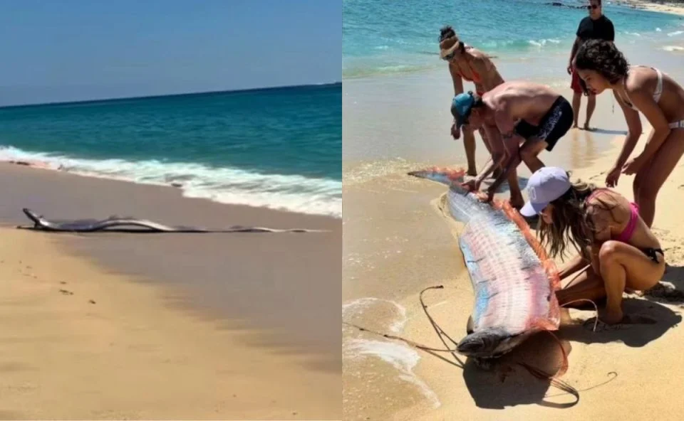 Dois exemplares do peixe-remo, espécie rara que vive nas profundezas do oceano, foram vistos em uma praia de Cabo San Lucas, no México, no fim de fevereiro. A aparição chamou a atenção de turistas e rapidamente viralizou nas redes sociais.