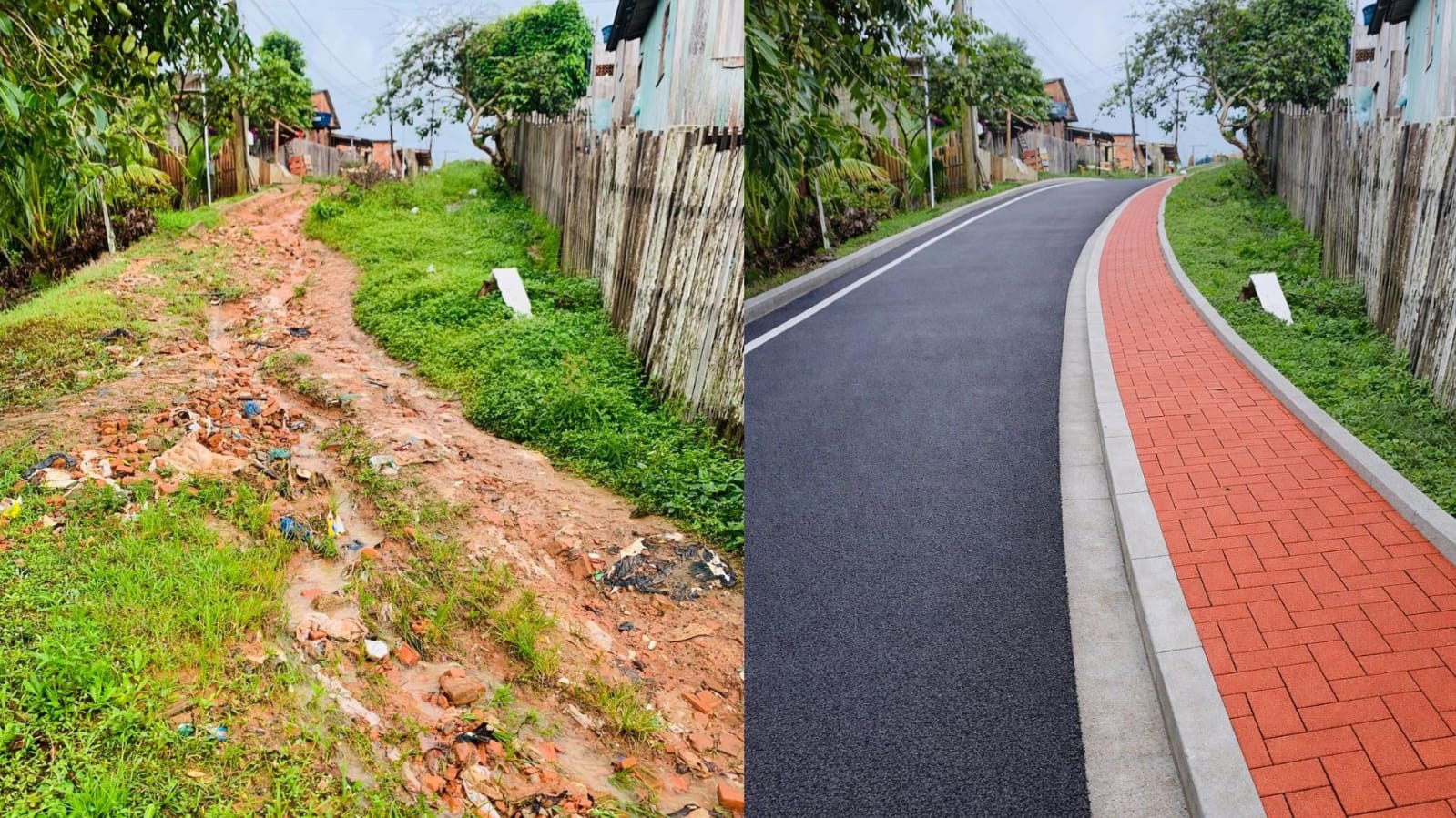 As imagens foram publicadas no perfil pessoal do morador no Instagram durante o fim de semana e retratam uma versão transformada da Rua Jorge Escócio de Farias, com asfalto, calçadas organizadas, drenagem e melhor estrutura urbana. A proposta foi comparar o cenário idealizado com a situação atual enfrentada pelos moradores.