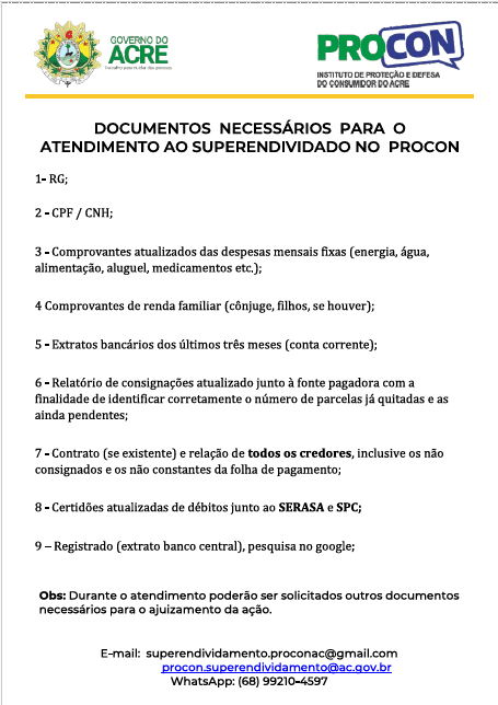 Para mais informações, o consumidor pode entrar em contato pelo telefone 151, pelo WhatsApp (68) 3227-7000 ou pelo e-mail [email protected].
