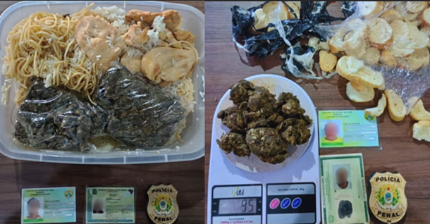 Já na segunda ocorrência do dia, uma mulher foi flagrada ao tentar driblar a fiscalização. Conforme a Polícia Penal, o entorpecente estava escondido em um fundo falso de uma vasilha com comida, estratégia descoberta durante a inspeção.