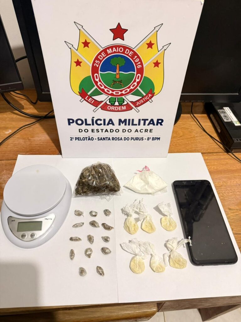 Policiais do 8º Batalhão da Polícia Militar (8º BPM) prenderam dois indivíduos em flagrante por tráfico de drogas em Santa Rosa do Purus.