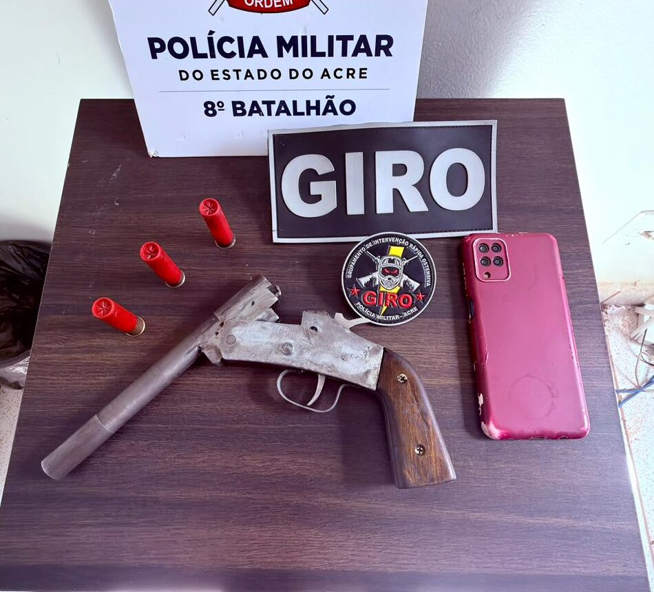 Uma ação rápida dos militares do Grupo de Intervenção Rápida e Ostensiva (GIRO), do 8° Batalhão, resultou na apreensão GIRO Sena Madureira bairro Niterói nesta quarta-feira, 29. Durante a operação, um menor de idade foi capturado e uma arma de fogo foi retirada de circulação em uma área residencial da cidade.