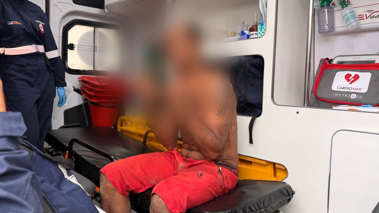 No local, os socorristas encontraram o homem, identificado como Marcenildo dos Santos Conceição, visivelmente alterado. Ele chegou a recusar atendimento, mas acabou sendo convencido a receber socorro.